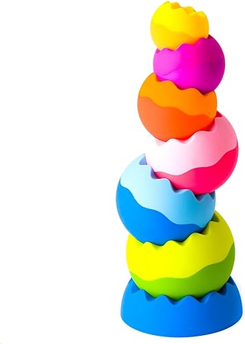 Every child enjoys stacking and toppling toys. The six uniquely weighted pieces encourage further investigation. The interesting shapes, different sizes, and vibrant colors invite sensory play. An easy-to-grip texture with unique contours will encourage any kid to explore all the pieces and discover what happens when stacking them. The unique design allows for delightful experimentation.