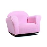 This cute chair is just like a grownup armchair, but with wooden rocking legs that look great next to the dresser. The kid’s chair is constructed on a durable wooden frame and upholstered with high-density foam for comfort. These cute rockers are great on the patio, living room, playroom, or the kid’s bedroom. The manufacturer recommends 2-5 years, the perfect size for toddlers and younger children. The rocking chair comes in five different colors: pink, green, brown, lavender, and navy blue.