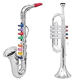 Children aged 3 years and above will have lots of fun learning to make music with this Click n’ Play set of two wind instruments, which features a toy saxophone and trumpet. Each instrument produces realistic musical notes, and the keys are color-coded, so kids can learn to play the songs printed on the box. The set is an ideal introduction to learning how to play musical instruments.